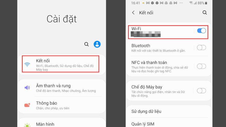 | Bước 1: Truy cập Cài đặt, chọn “Kết nối” và truy cập vào mục “Wifi”. |